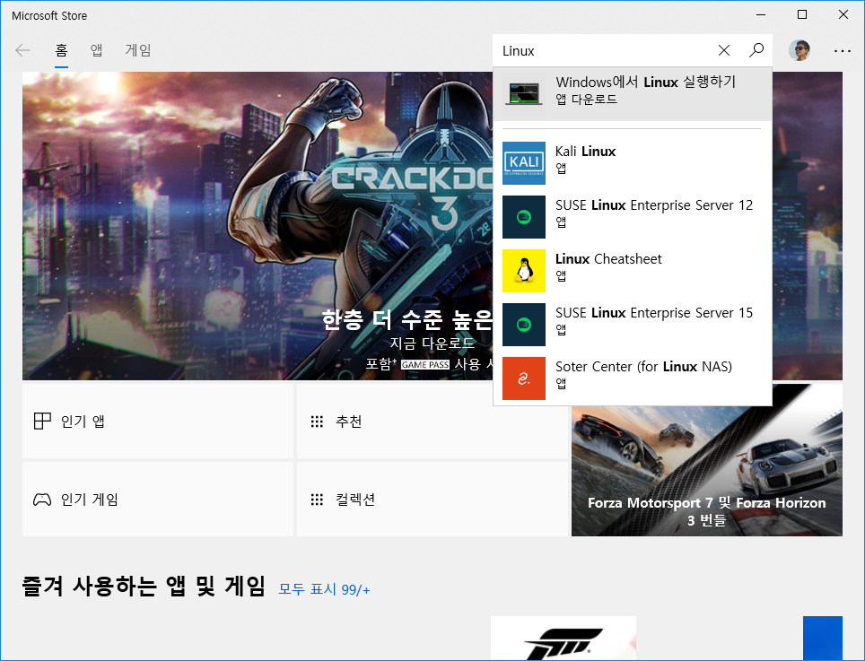 WSL 기능을 켰으면, Microsoft Store에서 관련된 Linux배포판을 설치하면 됩니다.